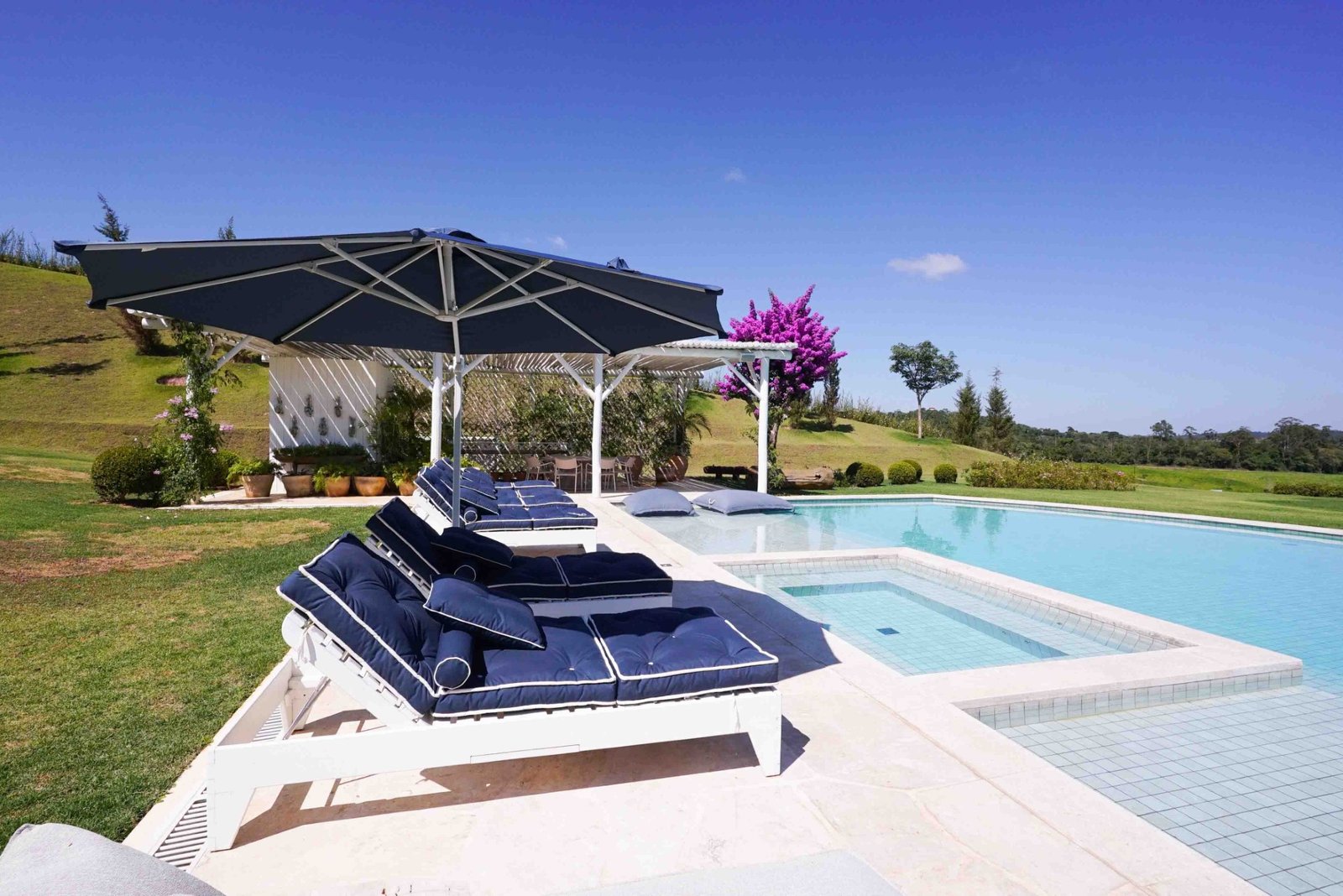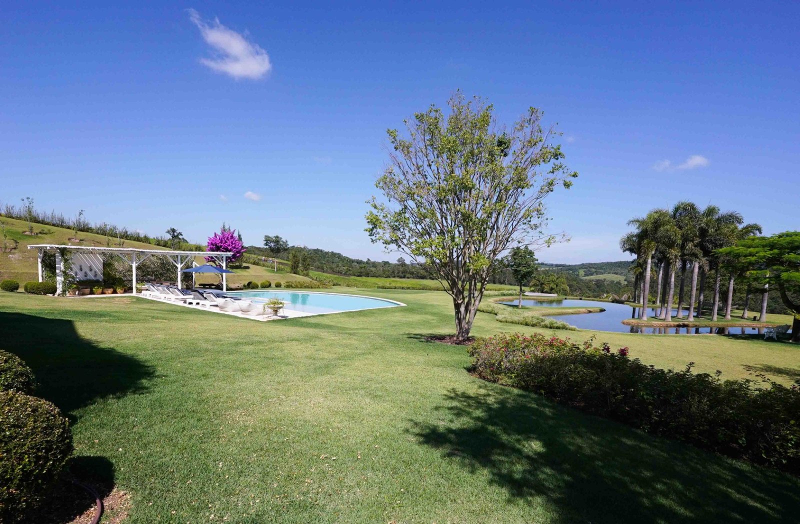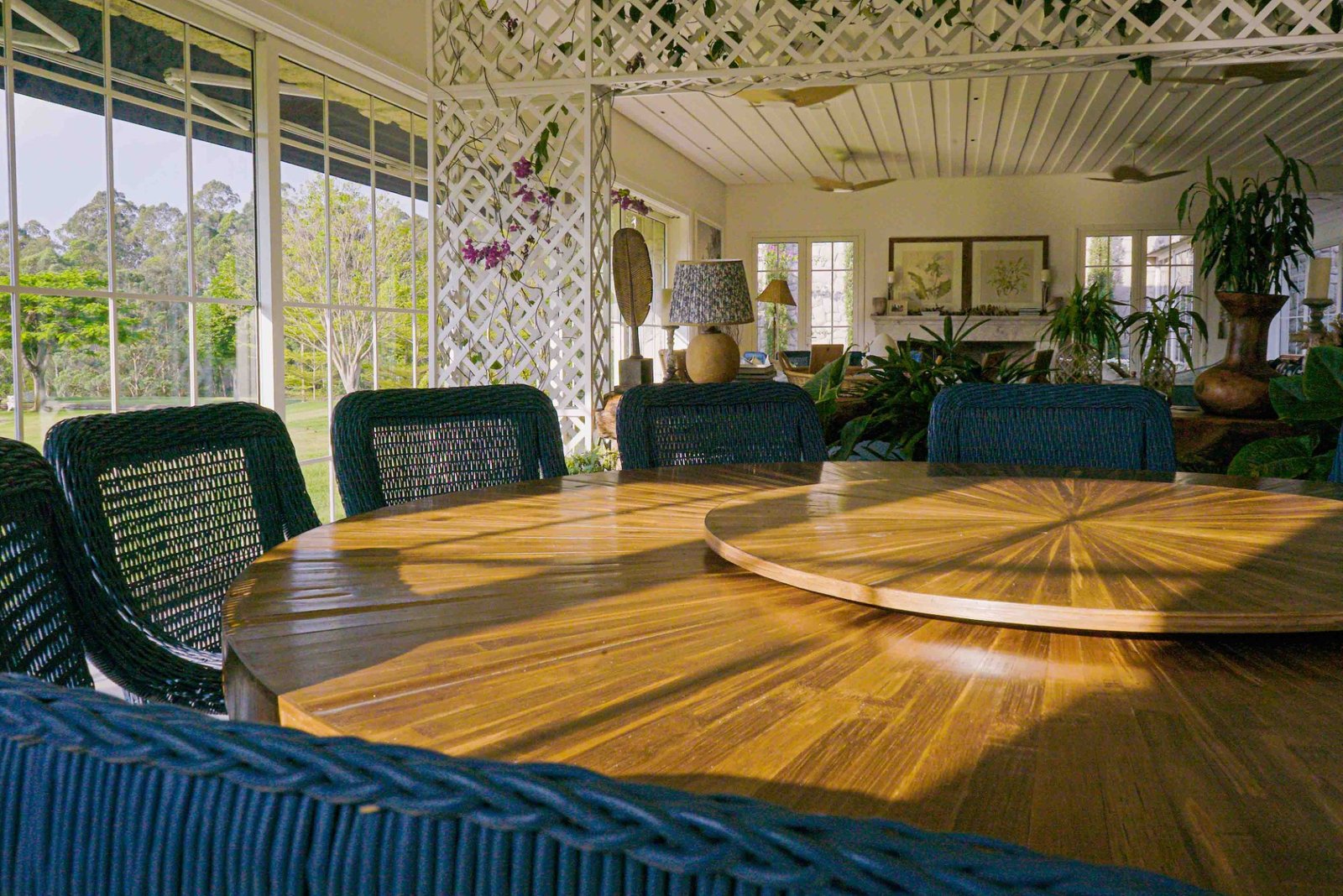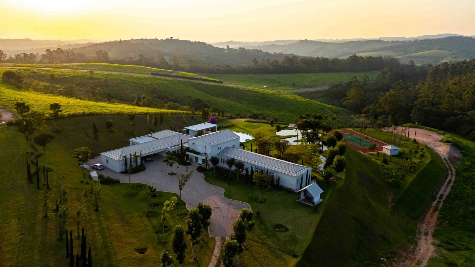 Para além dos interiores, um ponto de destaque é o jardim, que pode ser visto de todos os quartos. Cortado por um riacho sinuoso inspirado no rio Mississipi, o espaço está envolvido por uma vasta área de mata preservada. Características que é replicada no próprio terreno, com espécies trazidas exclusivamente para compor o paisagismo, incluindo uma bougainville centenária.