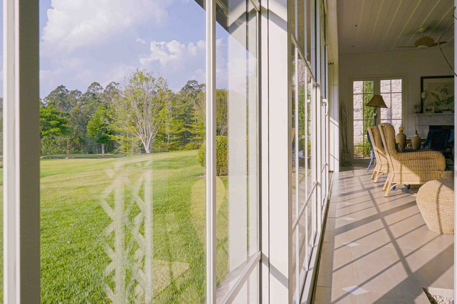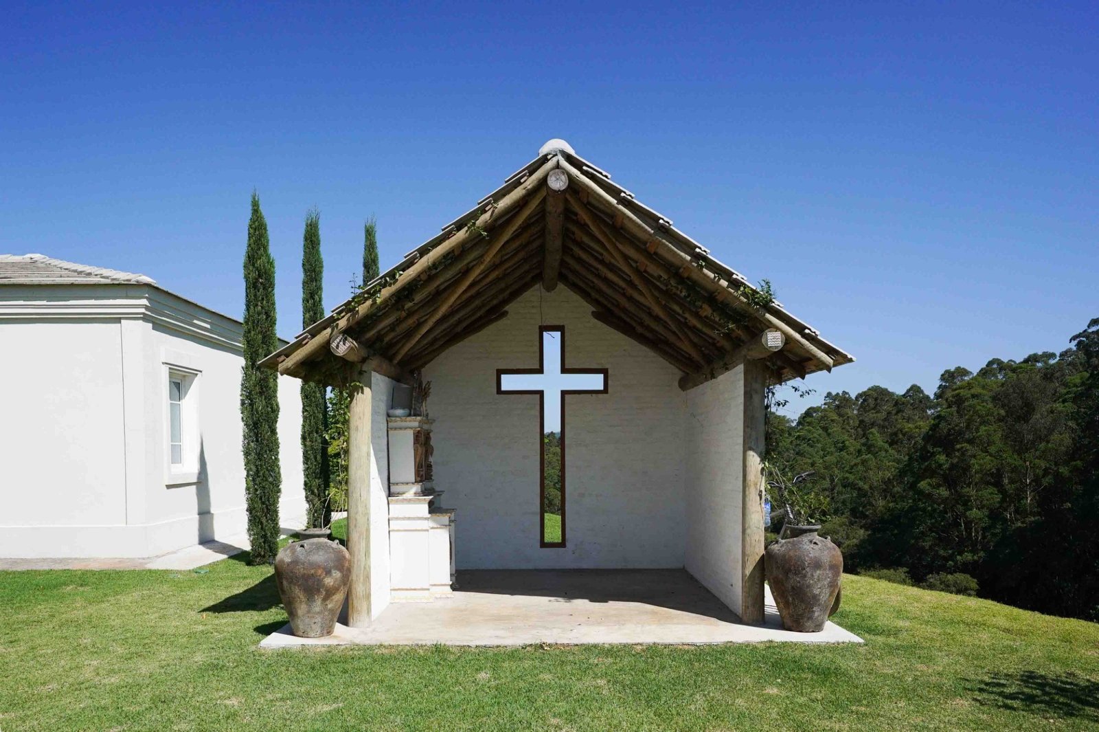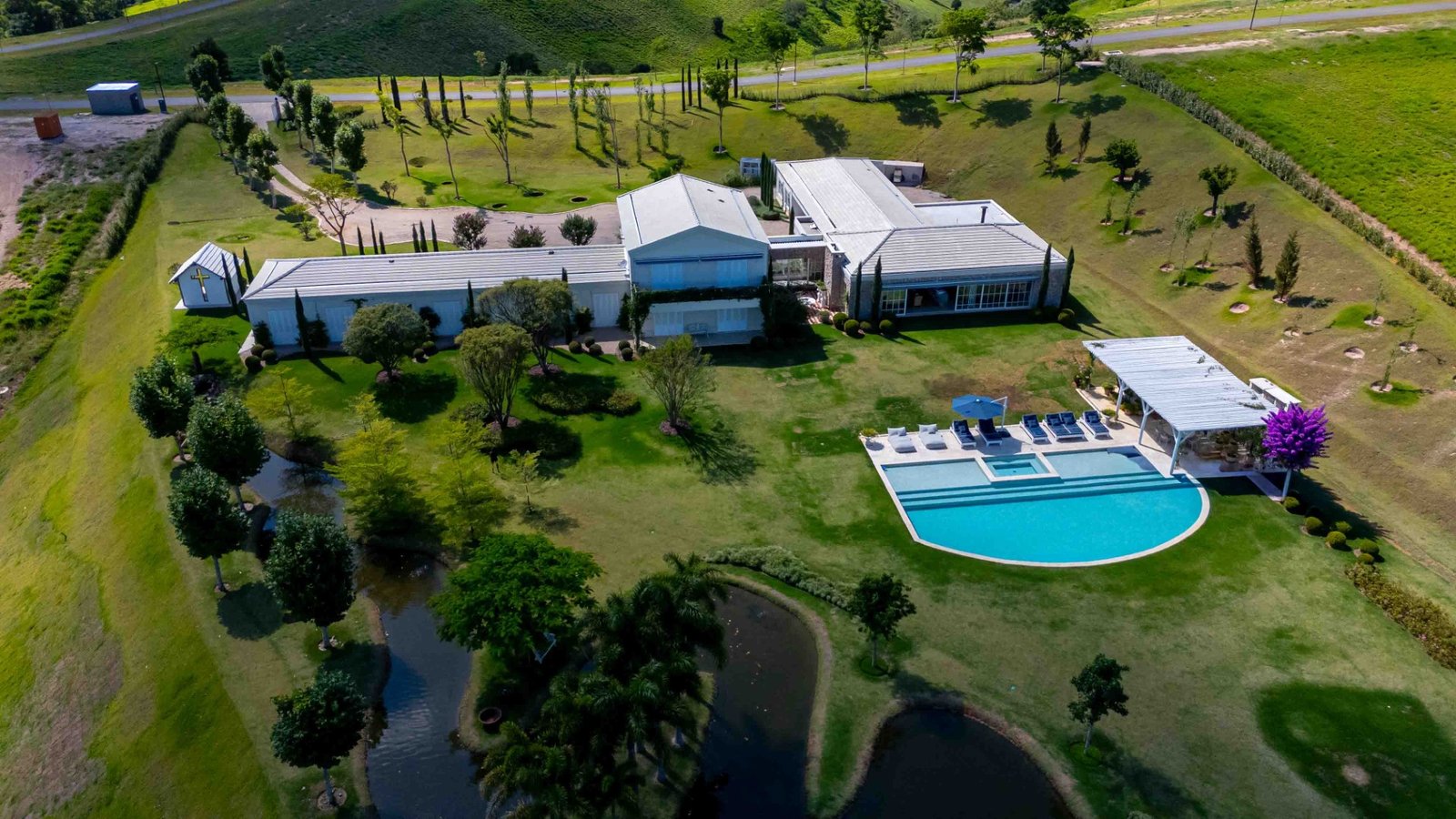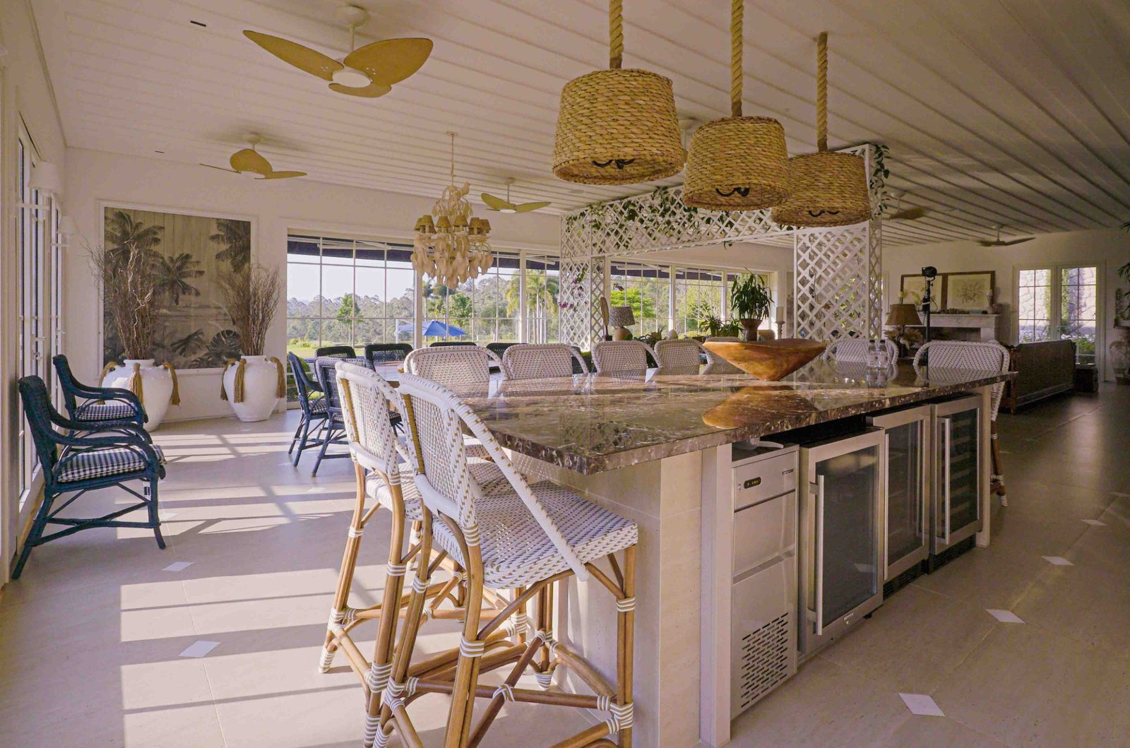 Para além dos interiores, um ponto de destaque é o jardim, que pode ser visto de todos os quartos. Cortado por um riacho sinuoso inspirado no rio Mississipi, o espaço está envolvido por uma vasta área de mata preservada. Características que é replicada no próprio terreno, com espécies trazidas exclusivamente para compor o paisagismo, incluindo uma bougainville centenária.