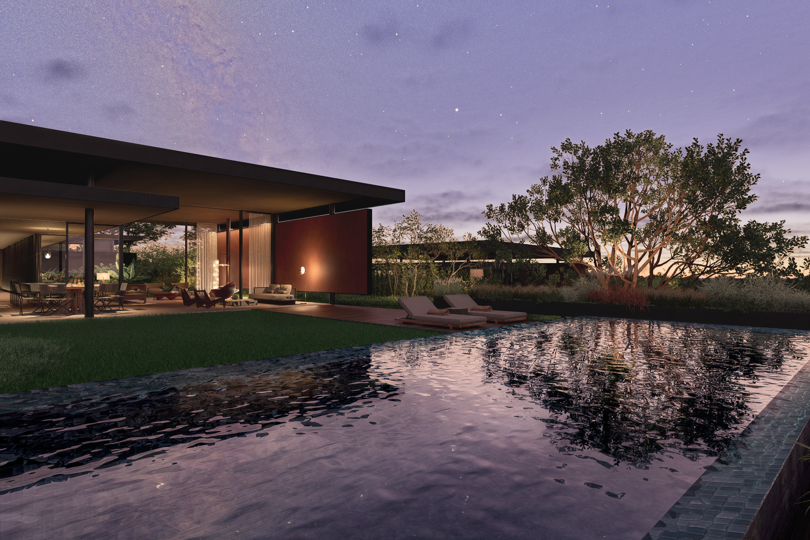 O resultado é uma casa que não apenas ocupa o terreno, mas o interpreta. Uma arquitetura que nasce da topografia, se molda à paisagem e traduz, em forma, material e espaço, os valores do empreendimento Fazenda Vista Verde: integração ambiental, qualidade de vida, sofisticação discreta e profundo respeito ao ambiente natural.